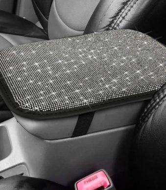 EEEkit Auto Center Console Pad, Colorful Armrest Cover Cushion for Car Diamond, Universal Cloth Crystal Decor Accessories for Women or Men, Car Decor Accessories with 4 Rear Seat Hooks