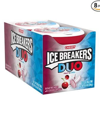 ICE BREAKERS DUO Cherry Flavored Fruit and Cool, Sugar Free Mints Tins, 1.3 oz (8 Count)