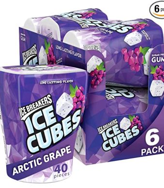 ICE BREAKERS ICE CUBES ARCTIC GRAPE With Cooling Crystals, Made with Xylitol Sugar Free Chewing Gum Bottles, 3.24 oz (6 Count, 40 Pieces)