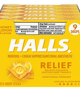 HALLS Relief Honey Lemon Cough Drops, 20 Packs of 9 Drops (180 Total Drops)