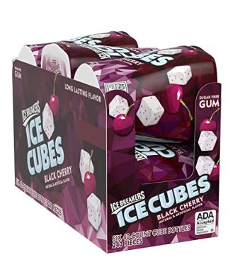ICE BREAKERS ICE CUBES Black Cherry Flavored Sugar Free Chewing Gum, Made with Xylitol, 3.24 oz Bottles (6 Count, 40 Pieces)