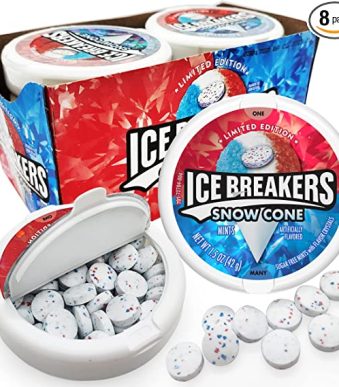 ICE BREAKERS Snow Cone Flavored – Sugar Free (8 Count) Ice Breaker Mints for Fresh Breath, Limited Edition Snow Cone Ice Breakers, Practical and Travel-Friendly Containers., 1.5 Ounces