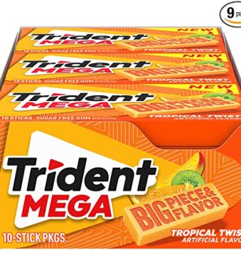 Trident Mega Tropical Twist Sugar Free Gum, 9 Packs of 10 Pieces (90 Total Pieces)
