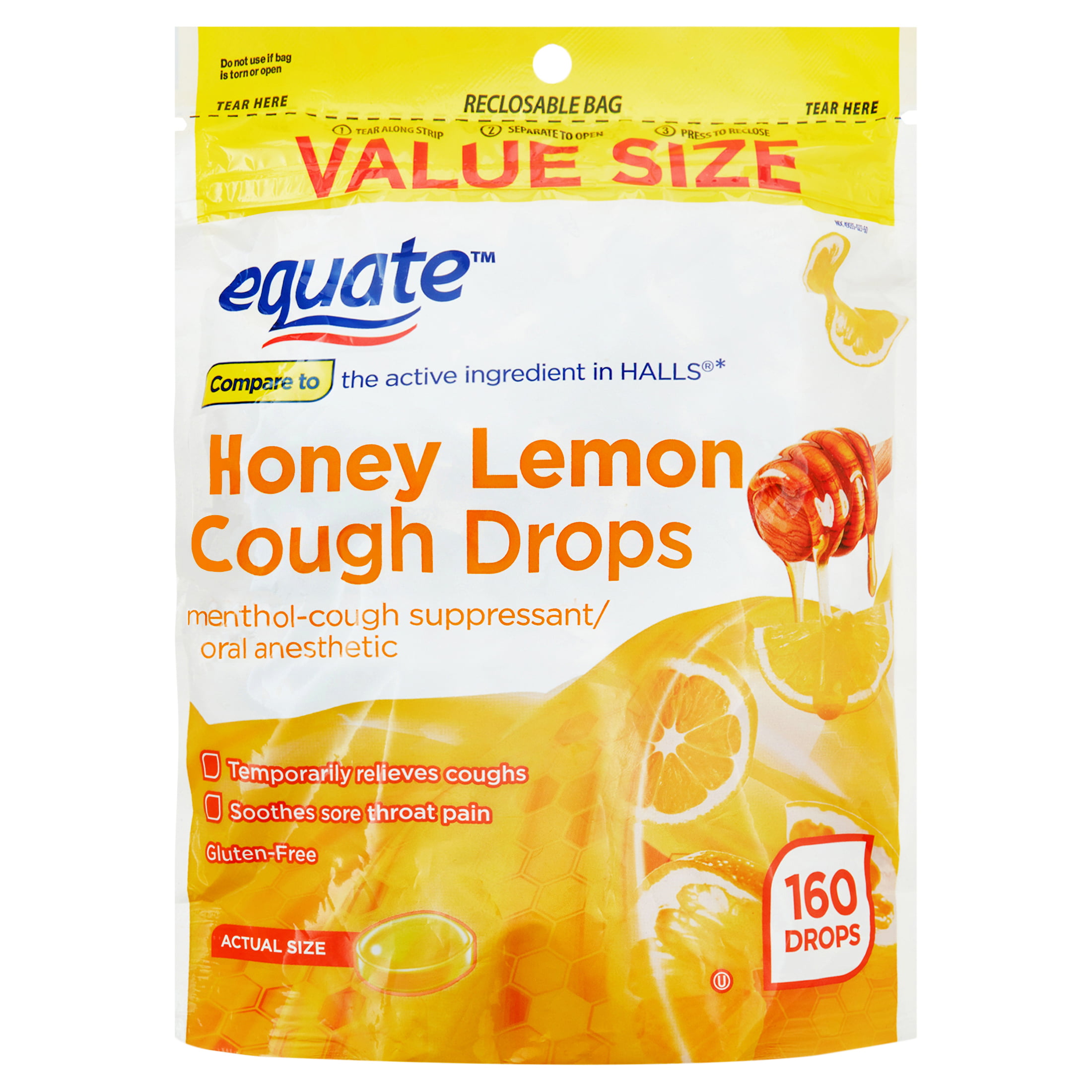 Equate Value Size Honey Lemon Cough Drops with Menthol, 160 Count